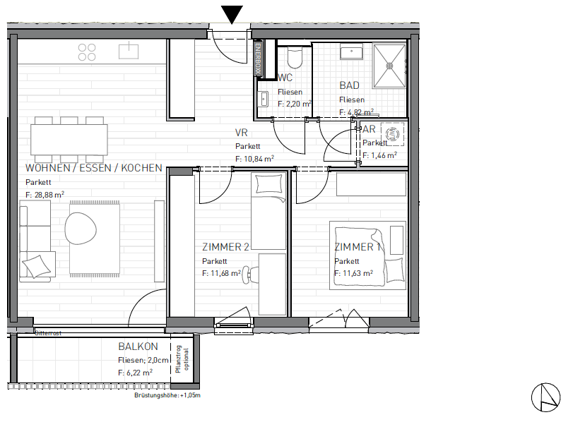 Willkommen in Ihrer neuen Traumwohnung, die mit intelligenter Raumaufteilung, viel Licht und moderner Ausstattung überzeugt: