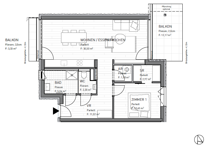 Die Möblierungen in den Grundrissen dienen als Orientierungshilfe und sind nicht im Kaufpreis inkludiert.